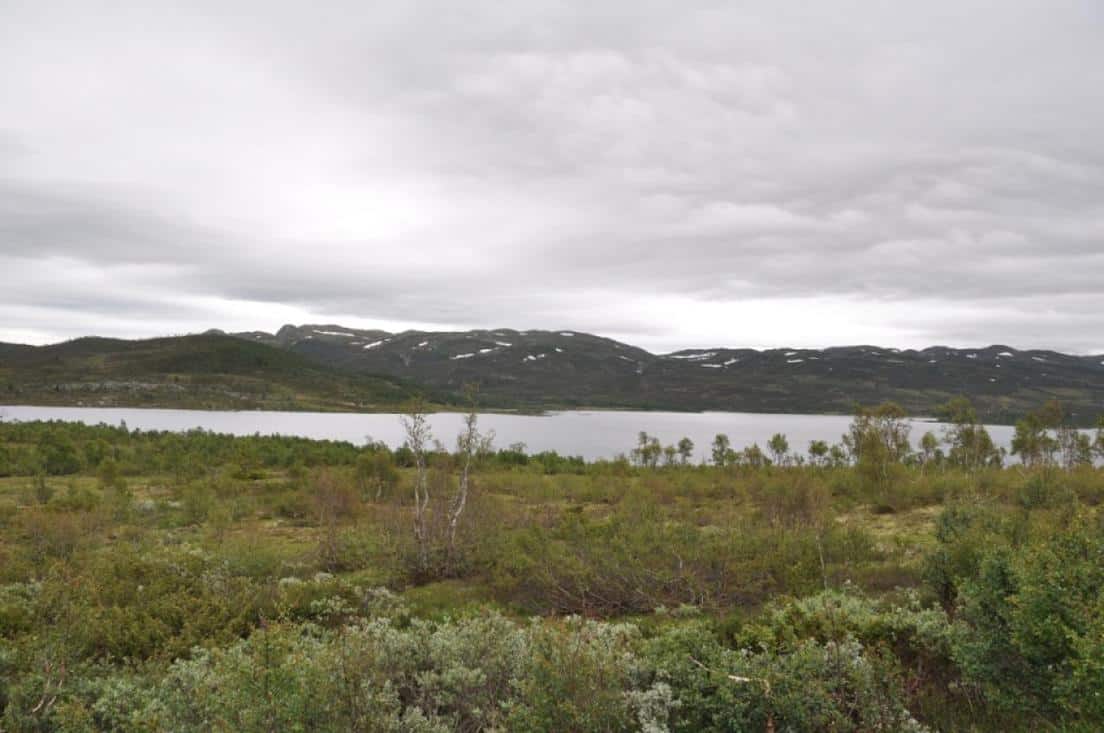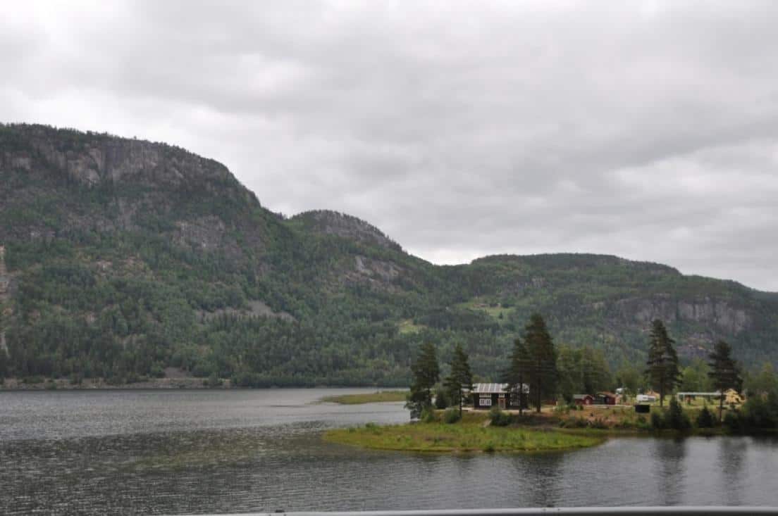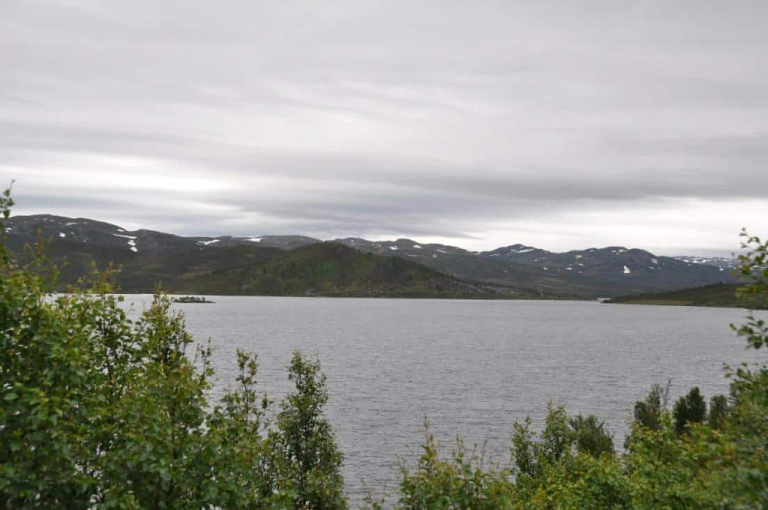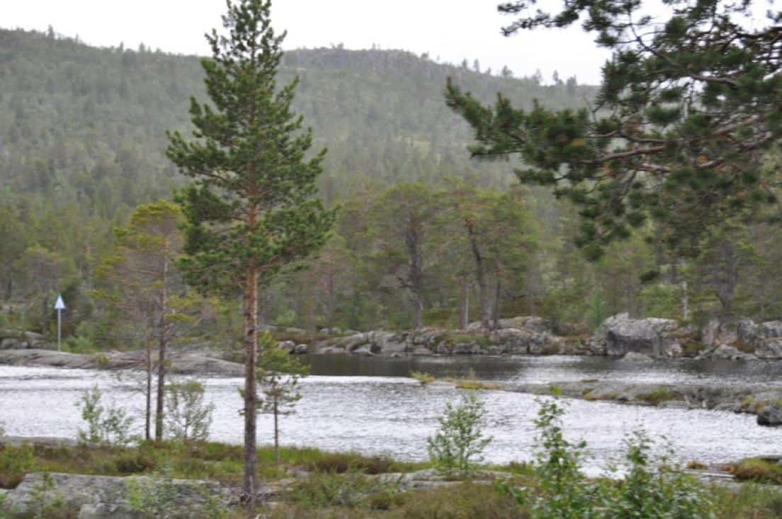 Zuerst sind wir von unserem friedlichen, aber saukaltem Campingplatz aufgebrochen. Als erstes Stand der Aufstieg zum Haukelifjell auf dem Programm. Das ist ein Hochland auf ca. 920 MüM. Klingt nicht spektakulär, die Landschaft ist aber wie bei uns auf 1’920 MüM. Die Wälder weichen Büschen, grosse Felsbrocken mit Flechten und einsame Gebirgsseen stehen da auf dem Programm. Die Temperatur geht auf 10° zurück. Kalt, aber sehr eindrücklich. Bei der Weiterfahrt haben wir ein Tier auf ca. 200m Distanz gesehen. Wir sind uns ziemlich sicher, dass dies ein junger Elch ist. Bereits zu Beginn ein Elch, das wäre ja der Renner!!