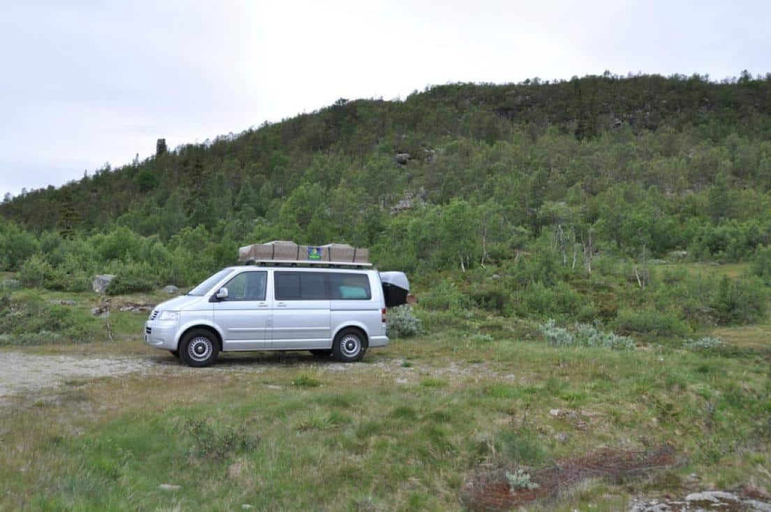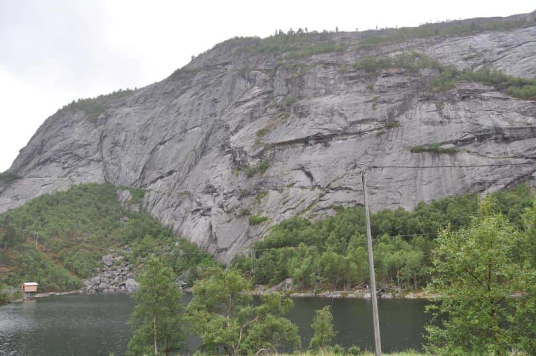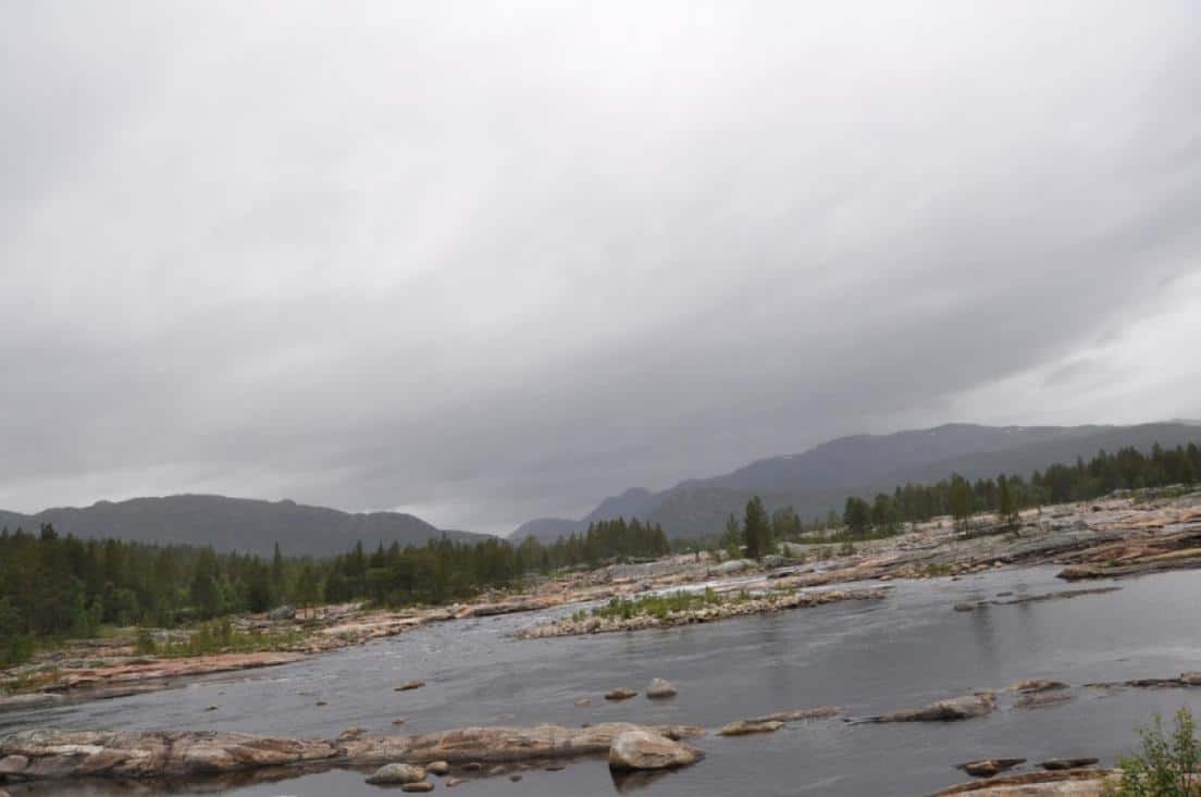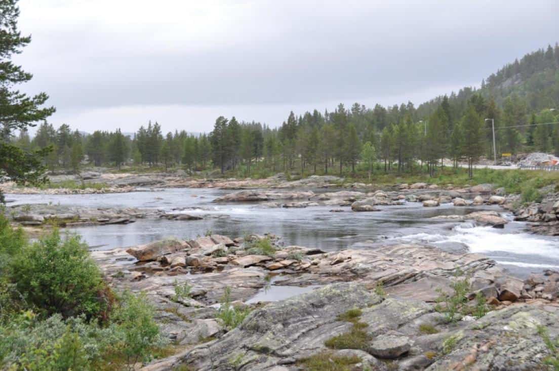 Zuerst sind wir von unserem friedlichen, aber saukaltem Campingplatz aufgebrochen. Als erstes Stand der Aufstieg zum Haukelifjell auf dem Programm. Das ist ein Hochland auf ca. 920 MüM. Klingt nicht spektakulär, die Landschaft ist aber wie bei uns auf 1’920 MüM. Die Wälder weichen Büschen, grosse Felsbrocken mit Flechten und einsame Gebirgsseen stehen da auf dem Programm. Die Temperatur geht auf 10° zurück. Kalt, aber sehr eindrücklich. Bei der Weiterfahrt haben wir ein Tier auf ca. 200m Distanz gesehen. Wir sind uns ziemlich sicher, dass dies ein junger Elch ist. Bereits zu Beginn ein Elch, das wäre ja der Renner!!