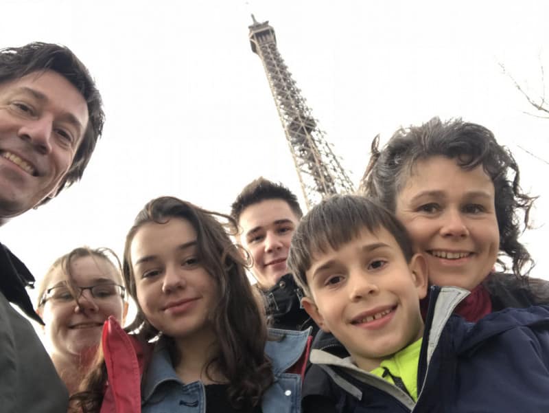 Wir fahren dann weiterzum Camping de Paris, wo wir uns für die nächsten 3 Tage angemeldet haben. Der Campingplatz liegt direkt an der Seine, am Rande des Bois du Boulogne. Diese riesige Grünfläche (Wald) trennt den Campingplatz vom Rest der Stadt. Hier nehmen wir erstmals eine Mütze voll Schlaf und holen den in der Nacht verpassten Schlaf nach. Es ist draussen kühl und regnerisch, insofern verpassen wir wohl nicht viel. Am späteren Nachmittag packen wir aber Hunde, Kinder und Regenjacken aus und gehen zu Fuss durch den Bois de Boulogne rund 50 Minuten bis zur nächsten Metro-Station. Von dort aus geht fünf Stationen bis zum Wahrzeichen von Paris, dem Eiffelturm. Wir bestaunen dieses über 120 Jahre Monument mit seinen 324m. Insgesamt hat der Eiffelturm 3 Stockwerke: Den 1. Stock auf 57m, den 2. Stock auf 115m und schliesslich den 3. Stock auf 276m.