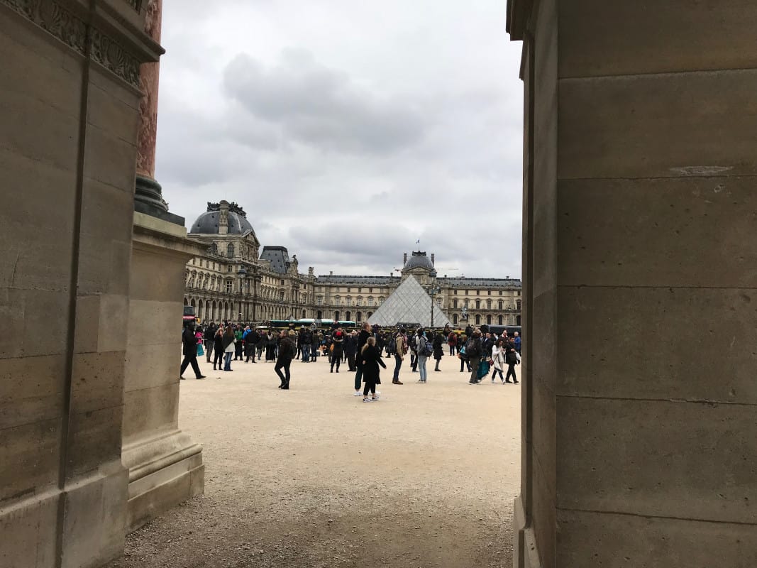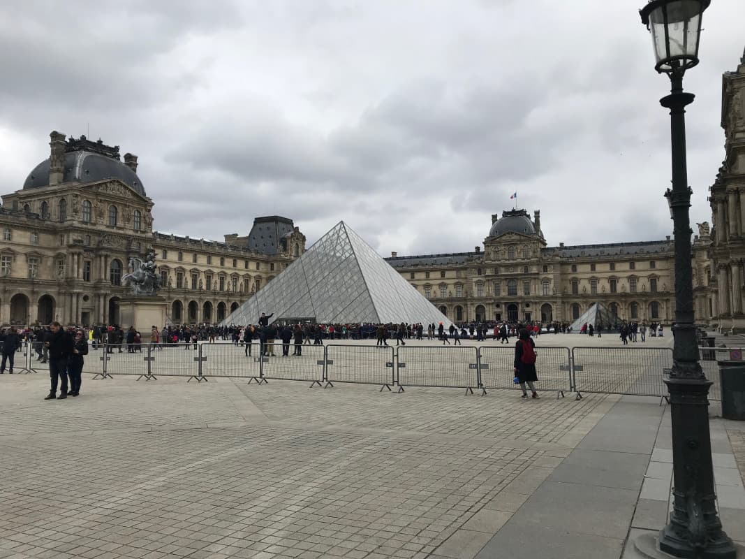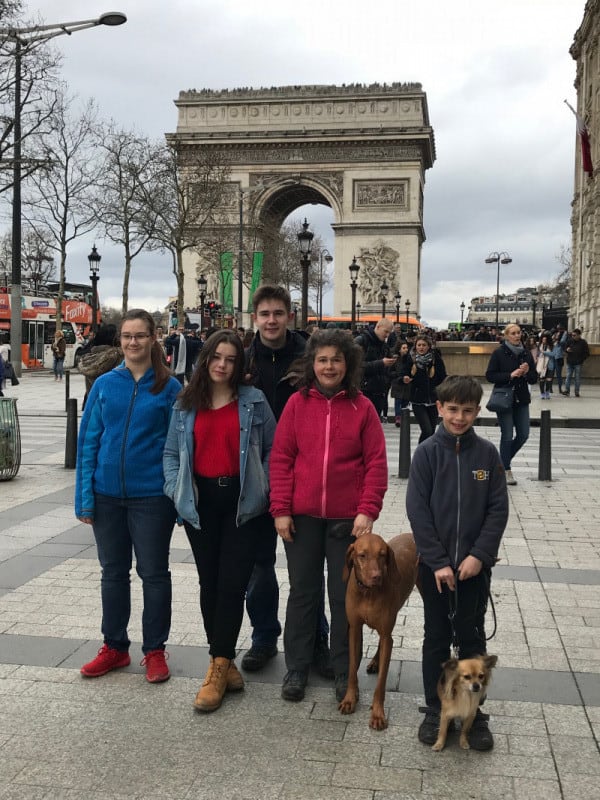 Am nächsten Tag gehen wir wiederum zu Fuss in die Stadt, nehmen diesmal aber einen schöneren Weg durch die Parkanlage und hübsche Vororte bis zur Station “Porte Maillot”. Von dort geht es diesmal mit der Metro bis zum L’Arc de Triomphe”, von wo aus wir anschliessend zu Fuss entlang der Champs-Elysées bis zum Louvre Museum spazieren. Es ist wie immer mit den Hunden in den Ferien: Rein in die Museen können wir nicht – aber von Aussen gibt es auch schon einiges zu sehen. Ist auch günstiger so :). Dasselbe schliesslich auch bei Notre Dame. Von Aussen wunderschön – von Innen für uns halt verborgen. Wir fahren am späteren Nachmittag wieder zurück zum Campingplatz, diesmal nahe beim Wolkenkratzer-Quartier in Paris vorbei – auch das gibt es dort. Beim Campingplatz gibt es zuerst mal gemütlich etwas Znacht – und die geplagten Füsse hoch lagern….